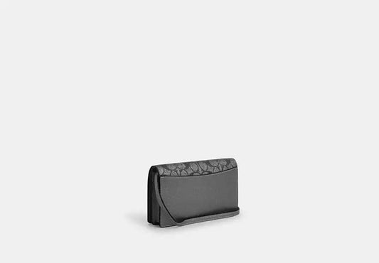 Anna Foldover Clutch Crossbody Bag In Signature Canvas Gunmetal Coach