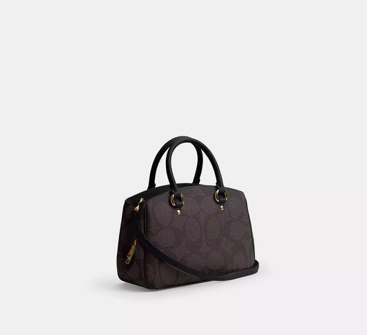 Savannah Small Carryall Bag In Signature Canvas Walnut Black Coach