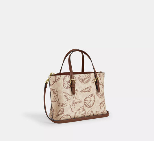 Mollie Tote Bag 25 In Signature Canvas With Shell Print Sand Multi Coach
