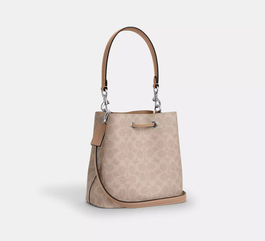 Rowan Bucket Bag In Signature Canvas Sand Taupe Coach