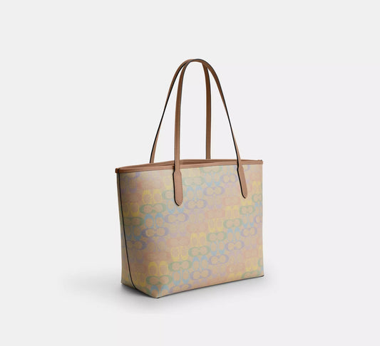City Tote Bag In Rainbow Signature Canvas Silver Coach