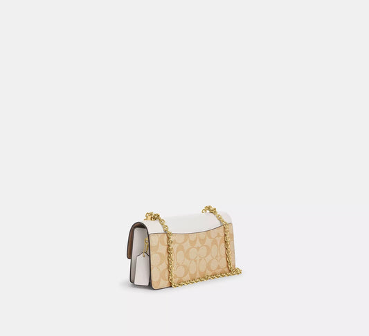 Eliza Flap Crossbody Bag In Signature Canvas Khaki Chalk Coach