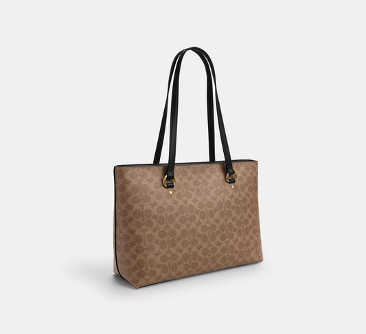 Station Tote Bag In Signature Canvas Tan Black Coach