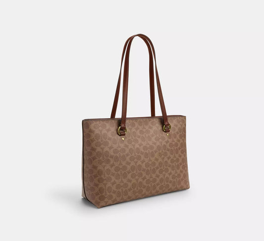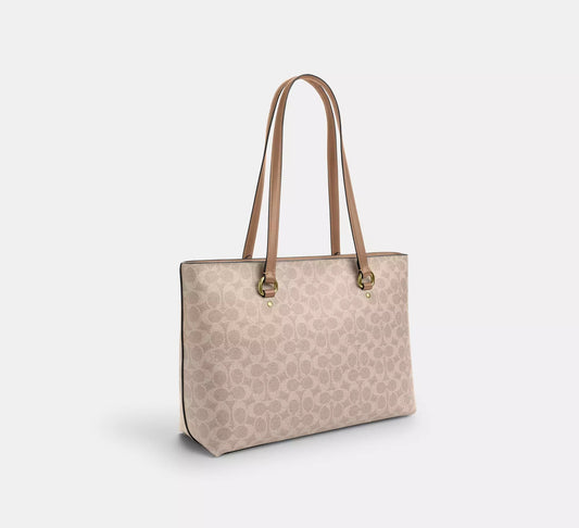 Station Tote Bag In Signature Canvas Tan Brown Coach