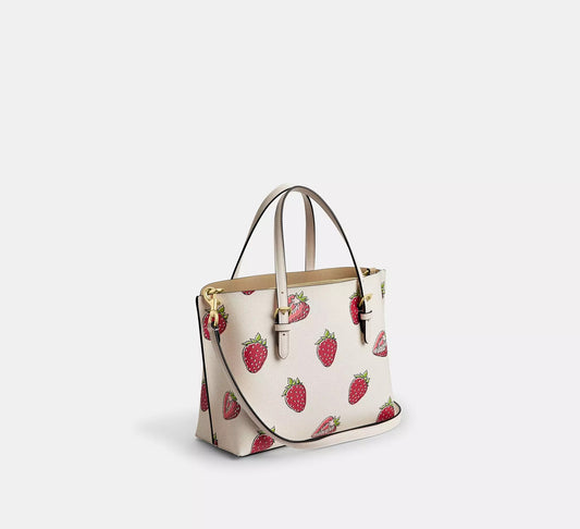 Mollie Tote Bag 25 With Strawberry Print Bag Chalk Multi Coach