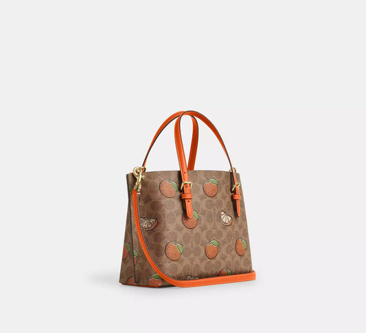 Mollie Tote Bag 25 In Signature Canvas With Orange Print Tan Multi Coach