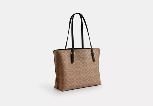 Mollie Tote Bag In Signature Canvas Walnut Black Coach