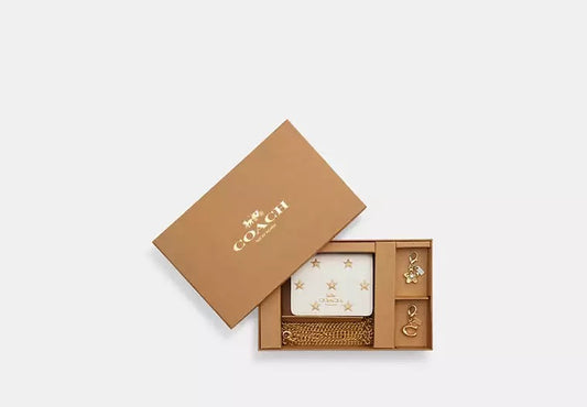 Boxed Mini Wallet On A Chain With Star Print Chalk Coach