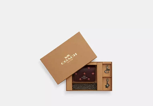 Boxed Mini Wallet On A Chain With Star Print Merlot Coach