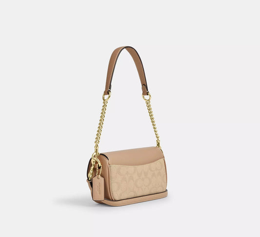 Hailey Flap Bag With Signature Canvas Dark Natural Multi Coach