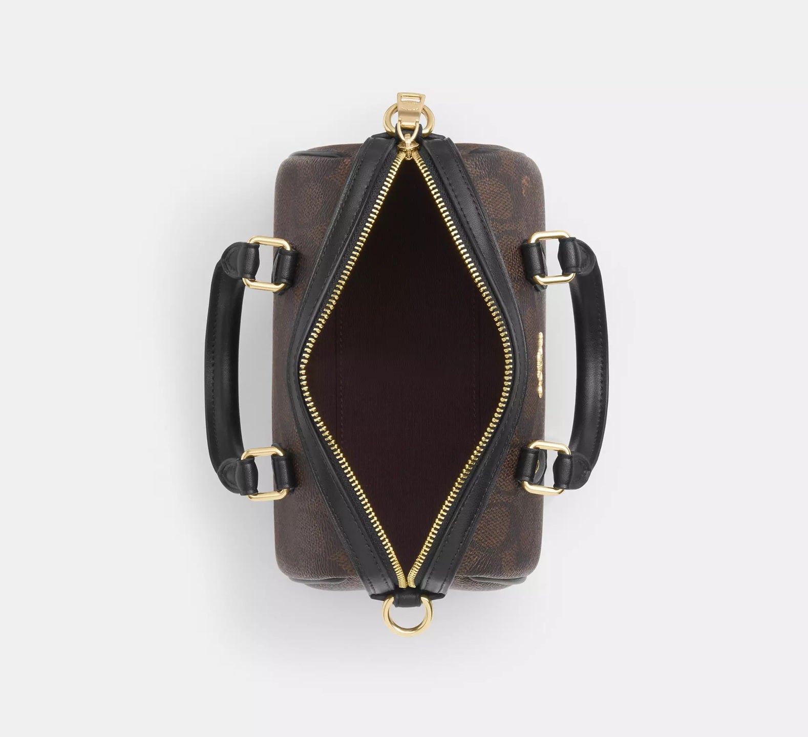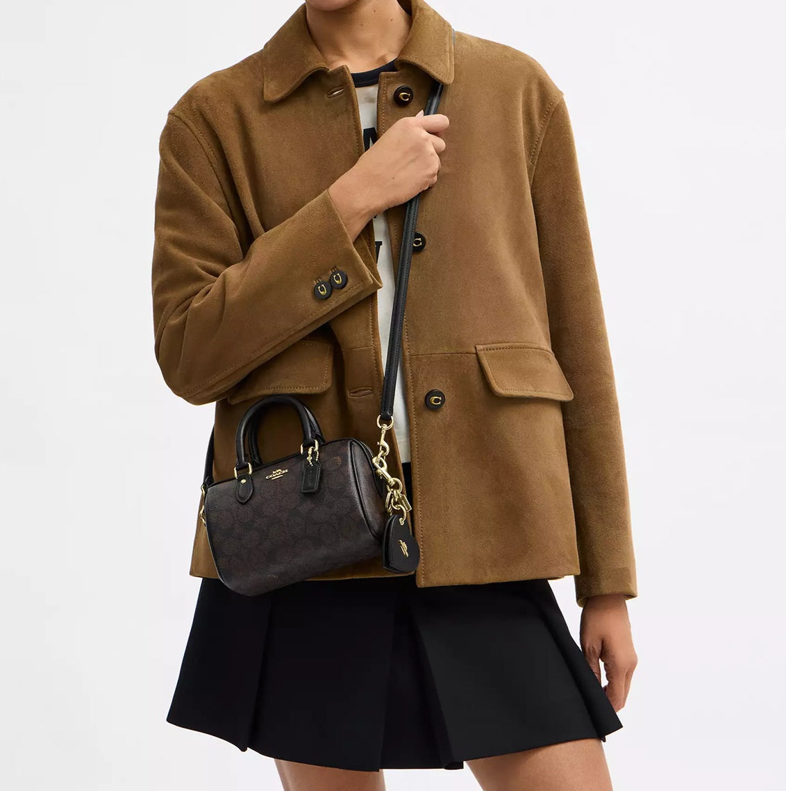 Boxed Mini Rowan Crossbody Bag And Mirror Bag Charm Set In Signature Canvas Walnut Black Coach