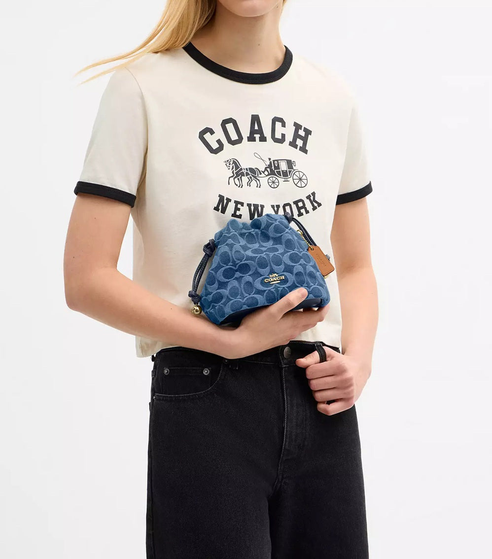 Faye Mini Drawstring Bag In Signature Denim Indigo Coach